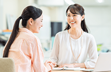 先ずは状況と気持ちを聞き取り、適切なアドバイスを行う ・職場での問題に関する相談支援 ・コミュニケーションアドバイス ・ビジネスマナー、社会人としての心構え、敬語等のレクチャー ・公的な相談期間の情報提供 |